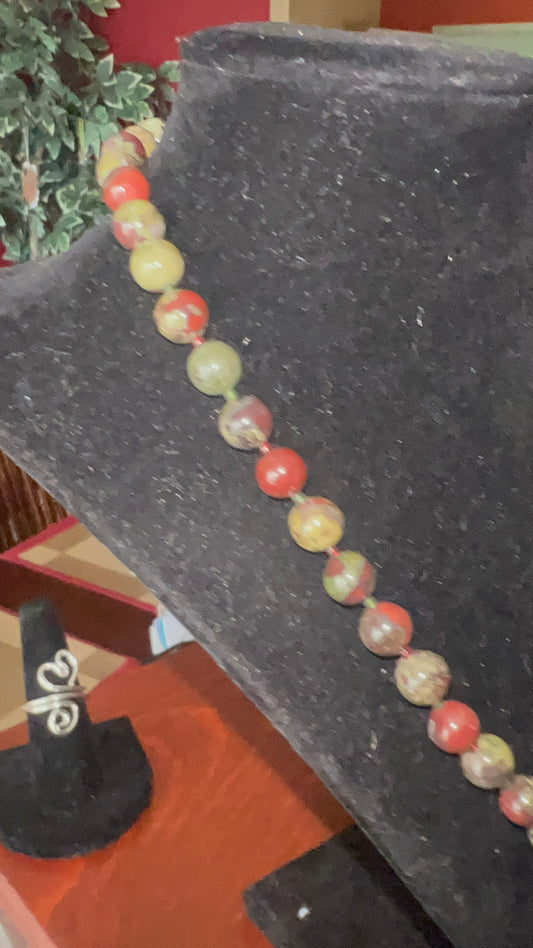 19 inch Dragon Blood Jasper Unisex Necklace with Silver Clasp