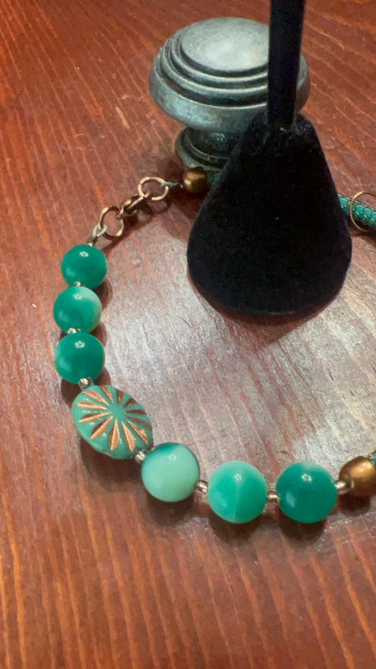 "The Greens" Pendant Silver Silk Bracelet with Copper and matching earrings