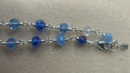 18 inch shades of blue and clear crystal necklace with silver clasp