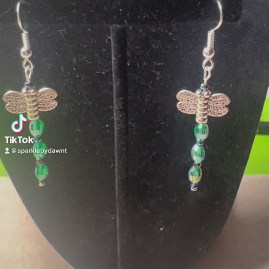 Teal Crystal and Rainbow/Iris Crystal Dragonfly Earrings